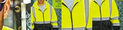 - Self-fabric collar with 6” locking zipper