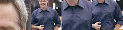 - Six button front plus gripper at neck