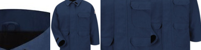 - 7.5 oz./yd² (US) 12.5 oz./L yd (CA), 55/45 ring-spun cotton/polyester fabric, 20 singles