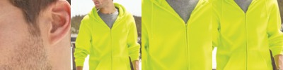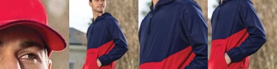 - Contrast hood lining, neck tape, flat drawcord, and sleeves