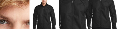 This fully waterproof, wind resistant and tech-savvy jacket delivers complete protection without the bulk. Made with a polyester woven shell bonded to polyester microfleece, this color blocked soft shell is great for cold days. Movement is a breeze with four-way stretch fabric. Plus, the interior MP3 pocket keeps the tunes coming in this sleek, urban jacket.