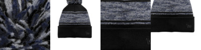 Three contrast stripes give a retro nod to this pom beanie, while the marled yarns put it right on-trend.
