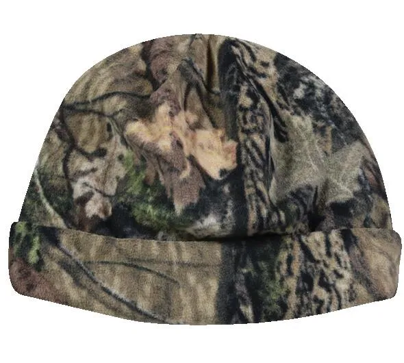 Solid Back,Polyester Fleece,Watch Cap,11.5" W x 10" H,3.5" H Cuff,Camo Reversible to Blaze Fleece,Anti-Piling Fleece Watch Cap