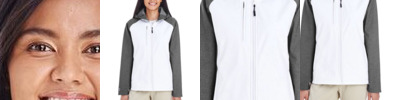 7.9 oz./yd²,100% spun soft polyester fleece Non-pill finish on surface Front yoke Raglan sleeves Princess seams for feminine shape Non-roll elastic cuffs Dyed-to-match zippers and zipper pull Front-zip pockets Bottom hem with drawcord and toggles