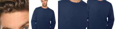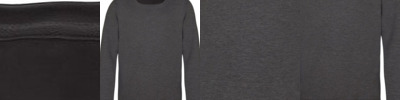 8.3 oz./yd², 80/20 ring-spun cotton/polyester with 100% cotton face Heather Grey is 75/25 ring-spun cotton/polyester Midweight fabric Twin needle stitching Ribbed collar, cuff and hem Tear away label