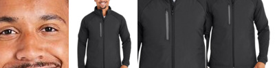 - Tone-on-tone neck, cuff, and bottom hem ribbing
