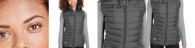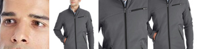 - Reverse coil center front zipper with dyed-to-match rubberized branded zipper pull
