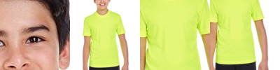 3.5 oz./yd², 100% polyester interlock Cationic dyes to ensure superior brightness and excellent color fastness Moisture-wicking performance UPF 40+ protection Team fit Clean finished with self-binding Transitioning from heat-seal label to tear away label