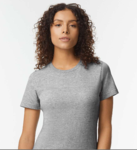 Gildan Women s 5.3 Ounce Softstyle Midweight T-Shirt. 100% ring spun cotton. 5.3 ounces. Semi fit. Side seamed. Taped neck and shoulders. Non-topstitched, narrow width, ribbed collar. Recycled tear away label.