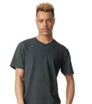 American Apparel Adult 6.0 Ounce Garment Dye Short Sleeve T-Shirt. 100% US Cotton, 6 ounce 18/1 yarn count. The Heavyweight Cotton collection offers rough and tumble concert must-haves. Garment dyed for that vintage, faded look and almost no shrinkage at home. Wide rib collar. Taped neck and shoulders for comfort and durability. Relaxed fit, seamless body. Recycled tear away label. Made with OEKO-TEX certified low-impact dyes.