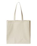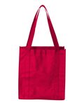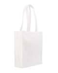 Liberty Bags 90 Gram Non-Woven reusable Grocery Tote. Heavyweight 90 gram non-woven polypropylene tote. PE board for base of bag, recyclable, 24 inch matching handles. Non-branded label/tag. 12.5 x 13.5 x 8.5.