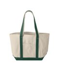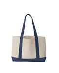 Liberty Bags 11.0 Ounce Classic Leeward Canvas Boater Tote. Classic 100% cotton canvas boat tote. Contrasting self fabric handles. Outside pocket (7.5W x 8H). Contrasting gusset bottom. Non-branded label/tag. 19 x 12 x 4.5.