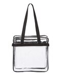 OAD Clear Zippered Tote With Top/Bottom Gusset. Transparent tote bag made with double-polished 100% PVC. Clear front pocket and double zipper pull. Large double top and bottom gusset. 29.5 carrying handles. Stadium compliant. 12 x 12 x 6.