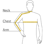 | Chest | 32 1/2-36 | 36 1/2-40 | 40 1/2-44 | 44 1/2-48 | 48 1/2-52 | 52 1/2-56 |