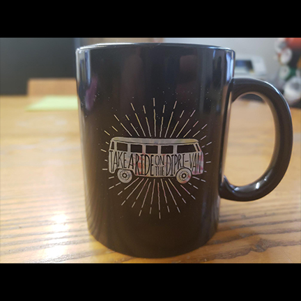 - Black reflective O heat transfer at front left hem